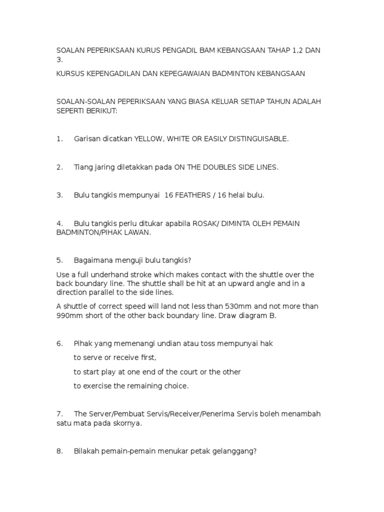 Contoh Soalan Peperiksaan Pegawai Badminton